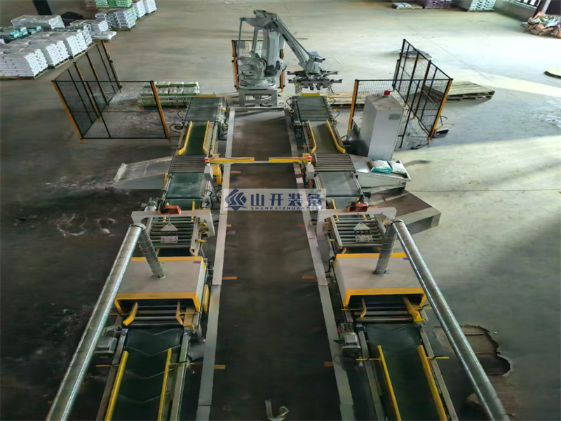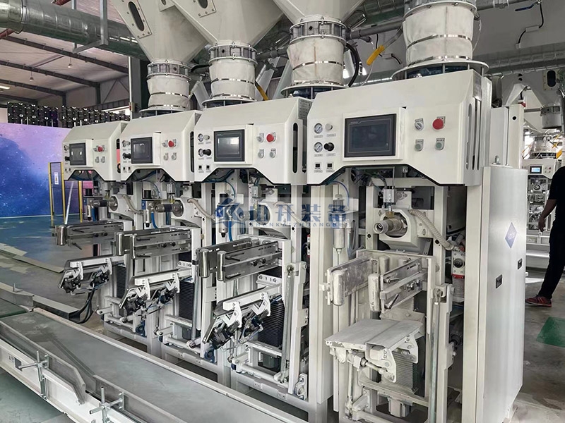 在山開裝備的生產(chǎn)車間內(nèi),一臺(tái)臺(tái)嶄新的閥口包裝機(jī)正整齊地排列著,等待著被裝載上...